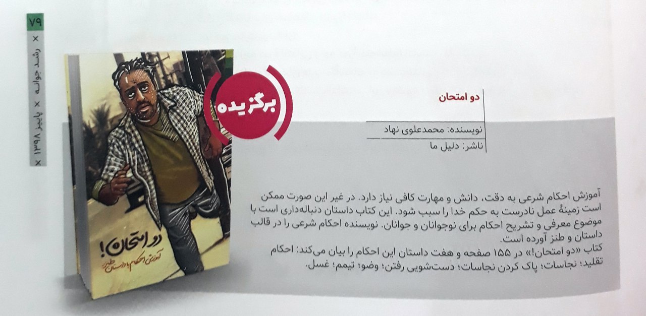 کتاب دوامتحان در هفدهمین جشنواره کتاب رشد که به همت سازمان پژوهش و برنامه‌ریزی آموزشی وزارت آموزش و پرورش برگزار می‌شود، در حوزه بینش اسلامی برگزیده کشوری اعلام شد.