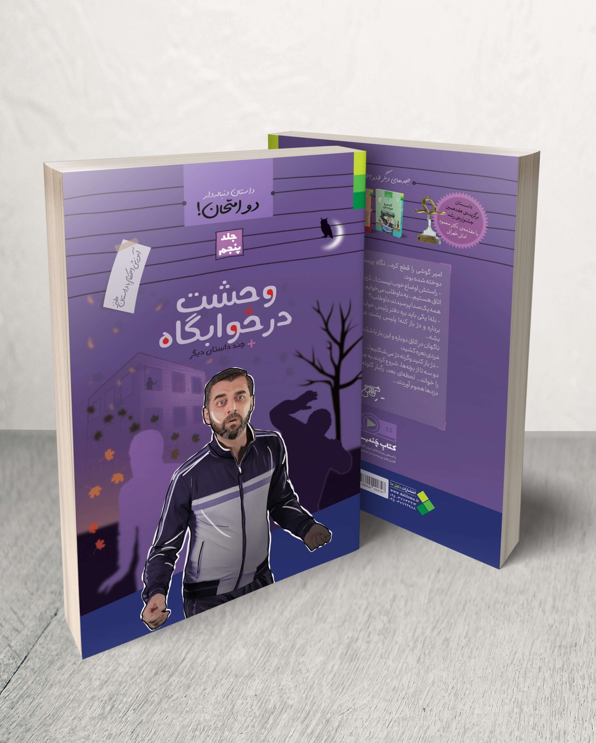 دو امتحان 5وحشت در خوابگاه و چند داستان دیگر جلد پنجم از مجموعهی پنج جلدی دو امتحان است و موضوعاتی از قبیل: احکام مال پیدا شده، احکام قرض دادن و برد و باخت و احکام موسیقی را با زبان طنز و در قالب داستانی دنبالهدار آموزش میدهد.